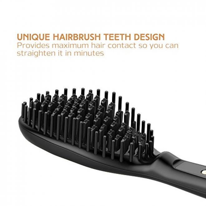 原文: I absolutely love this brush. It heats quickly, and straightened my hair wonderfully with ease. I love the accessories that come with it. The glove and brush.