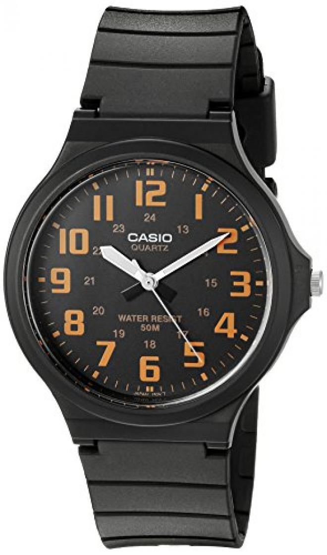译文: 很棒的手表。 大小适合男性,是44.5毫米的。这个价格很实惠了,手表非常轻巧,都会让你忘记带了手表。表带很不错。 (有人说表带很烂。)在亚马逊照片中,数字似乎是棕褐色,但他们是比较深的橙色。 我想对卡西欧说,将这枚44.6毫米的表壳与卡西欧MQ24-1E黑色树脂表盘搭配在一起会很好,我个人更喜欢没有数字的表。 有些是有标志,但没有数字。更新:昨晚是对夜视的检验。 整夜都可以看到这只表的指针。我所拥有的表中唯一能做到这点的是我的“ Luminox”